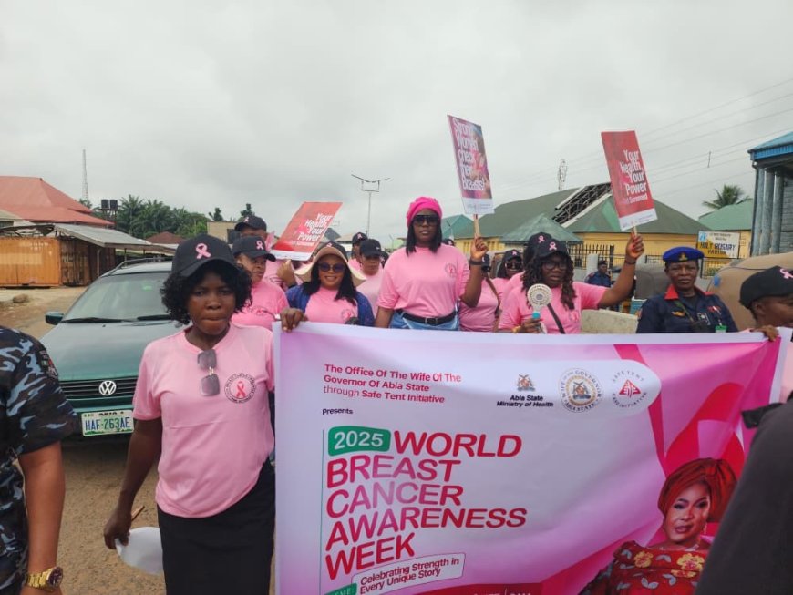 Abia First Lady, Mrs. Priscilla Otti, leads the 2025 Breast Cancer Awareness Week with a call for regular screening, sustained advocacy, and stronger support systems. The event featured an awareness walk in Umuahia and renewed commitment to women’s health in Abia State.