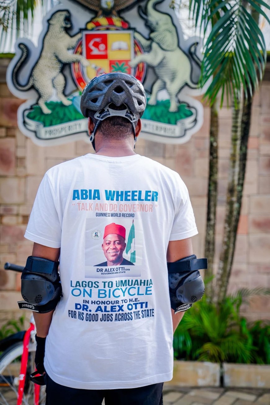 Governor Alex Otti receives cyclist who rode from Lagos to honor his achievements. He assures Abians that progress will continue and no distraction will stop the delivery of dividends of democracy.