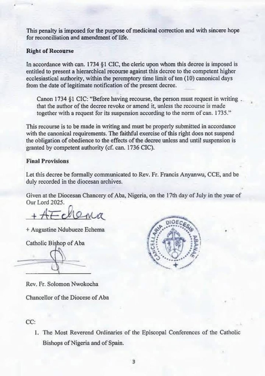 So far, neither Bishop Echema nor the Catholic Diocese of Aba has released any official statement, a silence that critics say is only fueling suspicion and disillusionment among members of the Church.